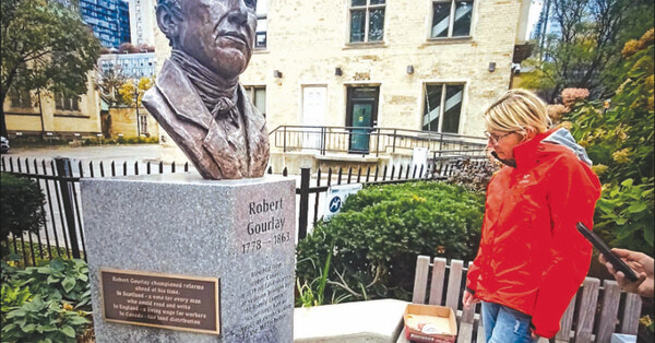 Один из моих любимых памятников - бюст Роберта Гурли работы Адриенны Элисон (2004). Он стоит в парке Сент-Джеймс и словно наблюдает за вами, когда вы проходите мимо. На гранитном постаменте написано: «Изгнан из Верхней Канады в 1819 году по ложным обвинениям в подстрекательстве к мятежу, выдвинутым Семейным договором. Его труды оказали влияние на события, приведшие к восстанию 1837 года».
